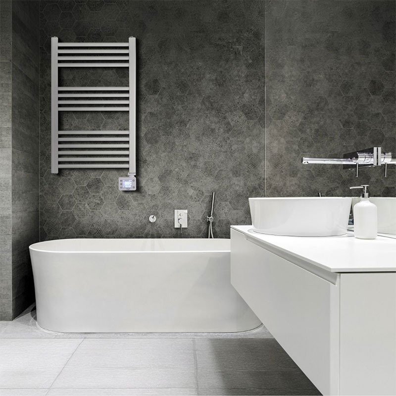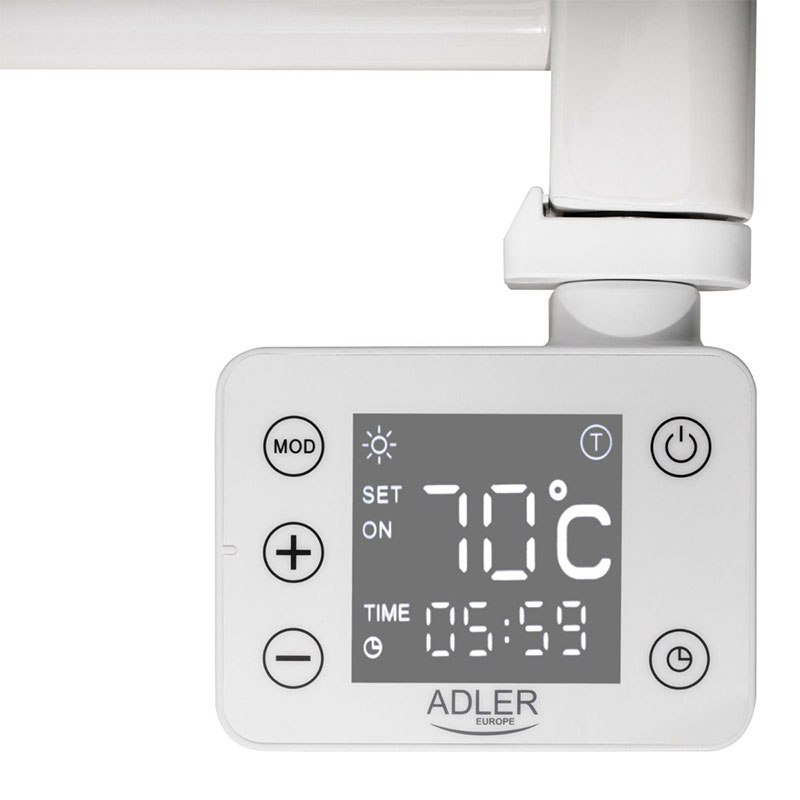 . Z močjo 600 W učinkovito ogreje kopalnice velikosti od 5 do 6 m², hkrati pa skrajša čas sušenja brisač. Opremljen je z LED zaslonom na dotik,