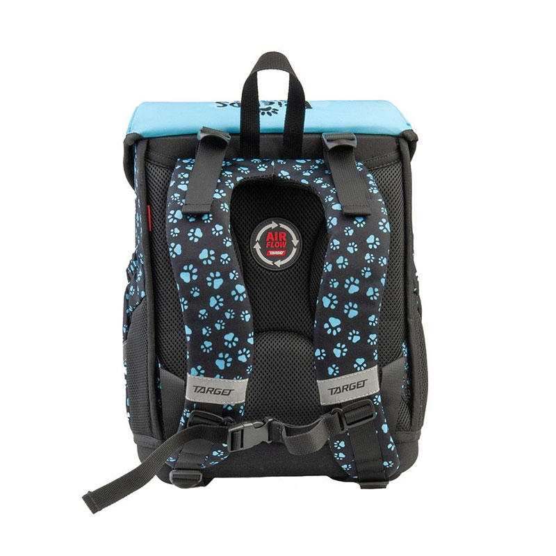 Posebnost torbe je ergonomsko, anatomsko oblikovano hrbtišče z Air Flow sistemom, ki omogoča učinkovito kroženje zraka in pomaga ohranjati suho ter udobno hrbtišče. Mehko oblazinjene in nastavljive naramnice ter prsni pas pa poskrbijo za pravilno porazdelitev teže in stabilnost pri nošenju. Praktična zasnova vključuje inovativno zapiranje na klik, ki omogoča enostavno odpiranje in zapiranje tudi z manjšimi otroškimi rokami. Trdo dno iz EVA materiala zagotavlja stabilnost torbe in jo ščiti pred umazanijo ter vlago. Notranjost je pregledno organizirana z notranjim organizatorjem, dodatno pa torba ponuja sprednji žep z zadrgo, stranska žepa za plastenko ali dežnik ter sponko in obesek za ključe. Za večjo varnost je opremljena s 360° odsevnimi elementi, ki povečajo vidljivost otroka v prometu.
