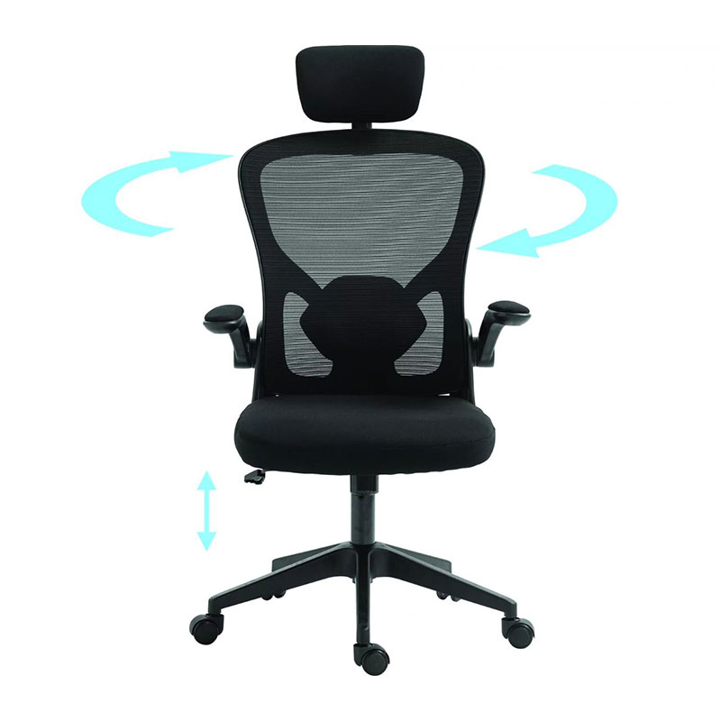 ter omogoča pravilno držo tudi pri dolgotrajnem sedenju. Udobno podložena naslona za roke sta enostavno nastavljiva,