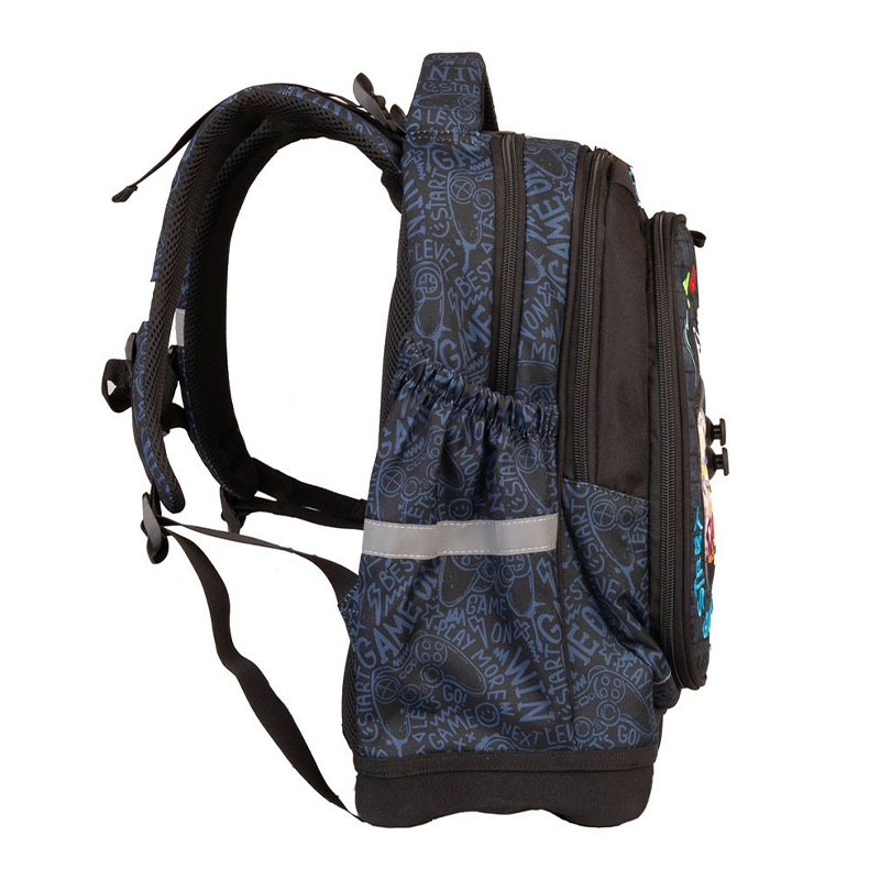 Ergonomski šolski nahrbtnik je nepogrešljiv za vse, ki obiskujejo prvo triado osnovne šole. Opremljen je z večplastnim trdnim dnom, ergonomsko oblikovanim hrbtiščem in zračnim materialom, ki zmanjšuje potenje, s tem pa zagotavlja večje udobje in zadovoljstvo. Naramnice so zelo trpežne in se lahko poljubno nastavijo. Za otrokovo varnost poskrbijo vgrajeni odsevniki, zaradi katerih je otrok ponoči viden s katerekoli strani. Izdelan je iz kvalitetnega, zelo trpežnega 600D poliestra. Z odstranljivim prednjim predelom je lahko torba, čez nekaj časa, spet popularna.