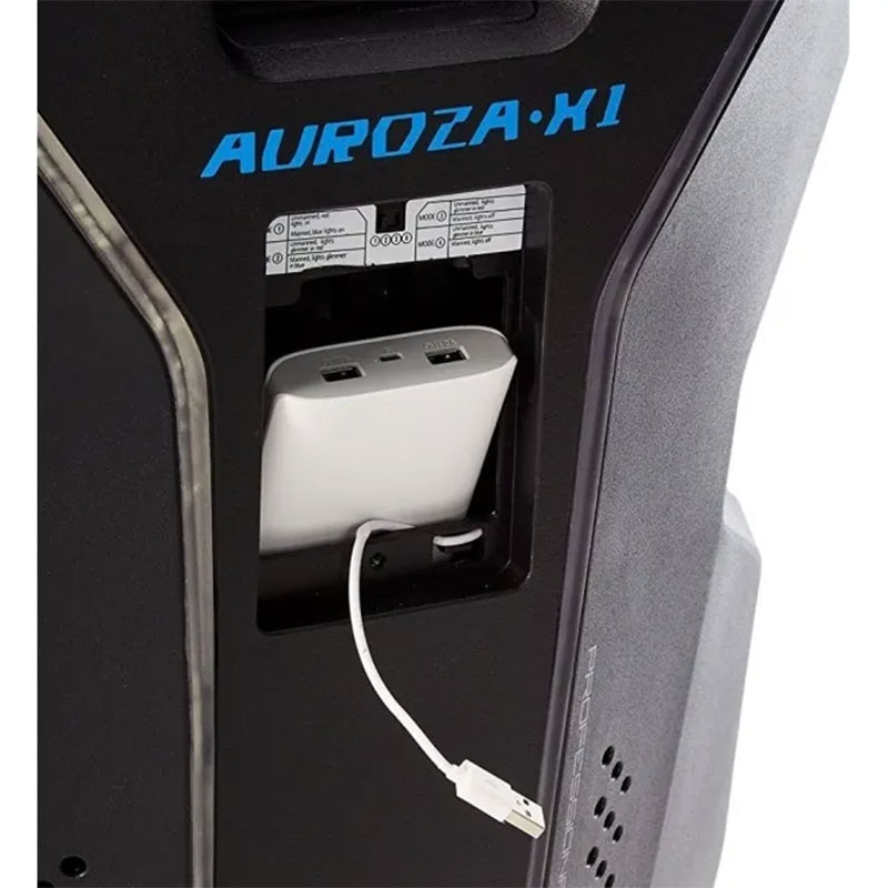 omogoča izklop osvetlitve pri zasedenem stolu in pulziranje modre pri prostem. Osvetlitev napaja priložena (powerbank) baterija kapacitete 20.000 mAh.