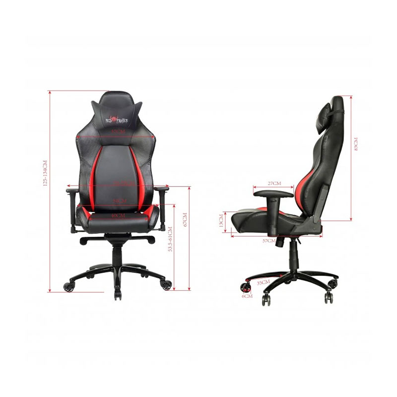 gaming stol je zasnovan za igralce, ki iščejo udobje in prilagodljivost med dolgimi urami igranja ali študija. Njegova ergonomska oblika s kakovostnim oblazinjenjem iz PU usnja in PVC-ja zagotavlja trpežnost in enostavno čiščenje. Sedež in naslon sta izdelana z visoko kakovostnim