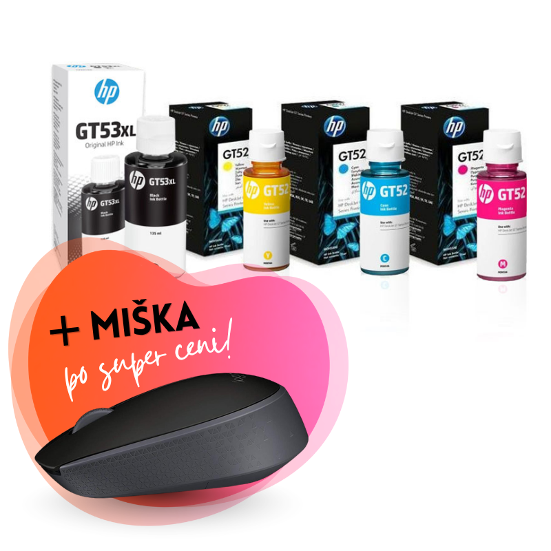Komplet črnil za HP GT53 XL BK + GT52 (C/M/Y), original + brezžična miška po SUPER ceni
