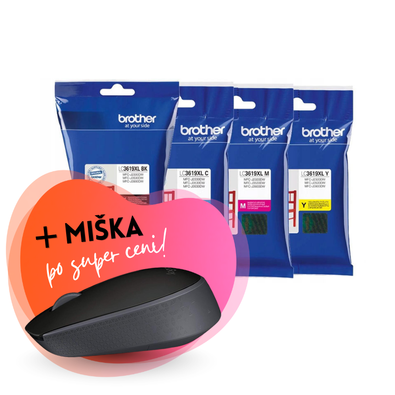 Komplet kartuš Brother LC3619XL (BK/C/M/Y), original + brezžična miška po SUPER ceni