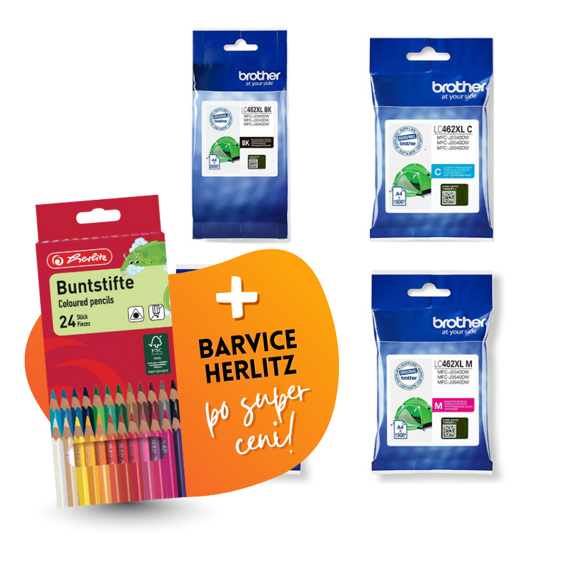 Komplet vsebuje: original kartuše Brother LC462 XL (BK/C/M/Y) in Barvice Herlitz, 24 kosov.
