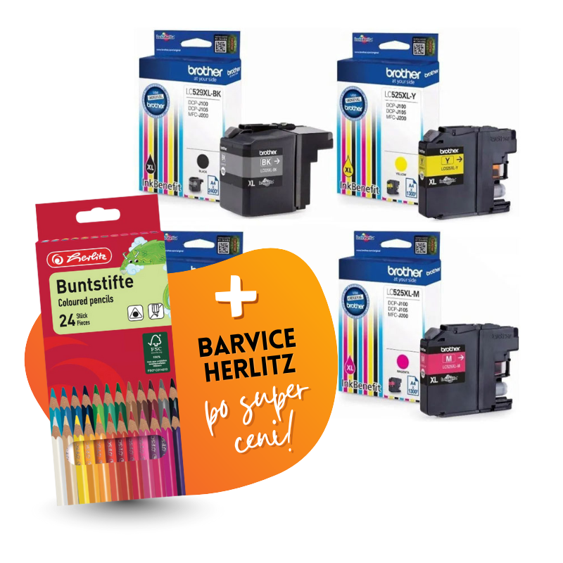 Komplet vsebuje: original kartuše Brother LC529XL (BK) + LC525XL (C/M/Y) in Barvice Herlitz, 24 kosov.
