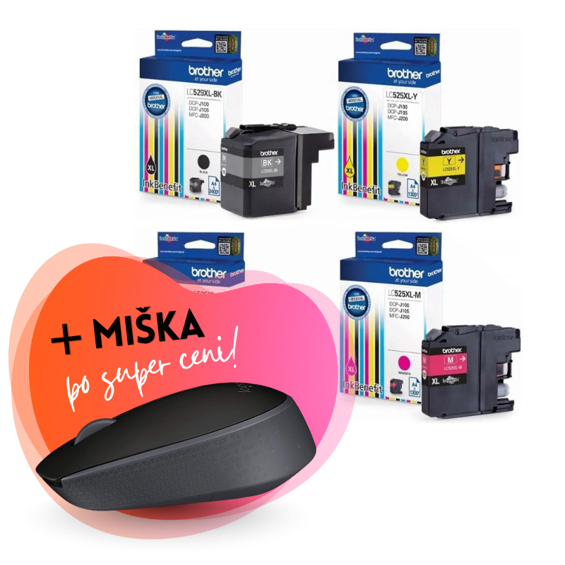 Komplet kartuš Brother LC529XL (BK) + LC525XL (C/M/Y), original + brezžična miška po SUPER ceni