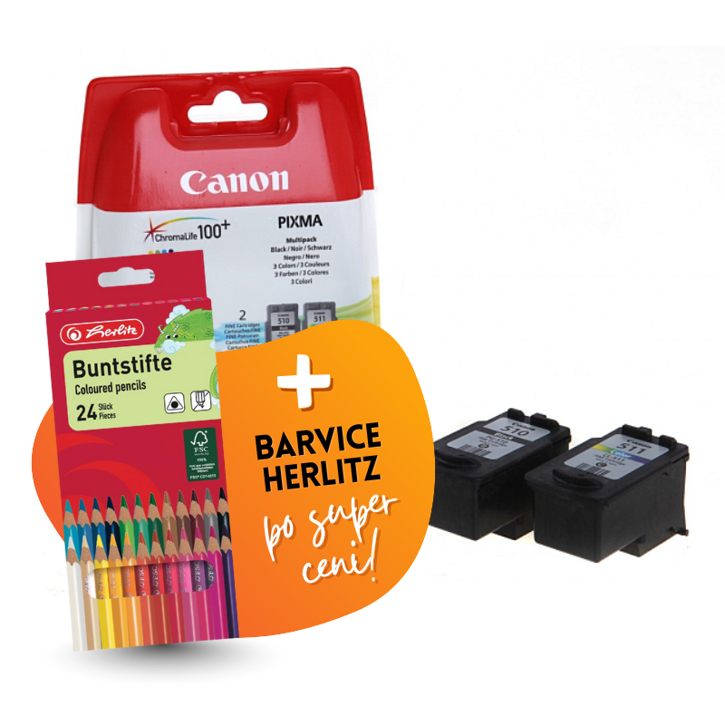 Komplet vsebuje: original kartuše PG-510 + CL-511 (BK + CMY) in Barvice Herlitz, 24 kosov.