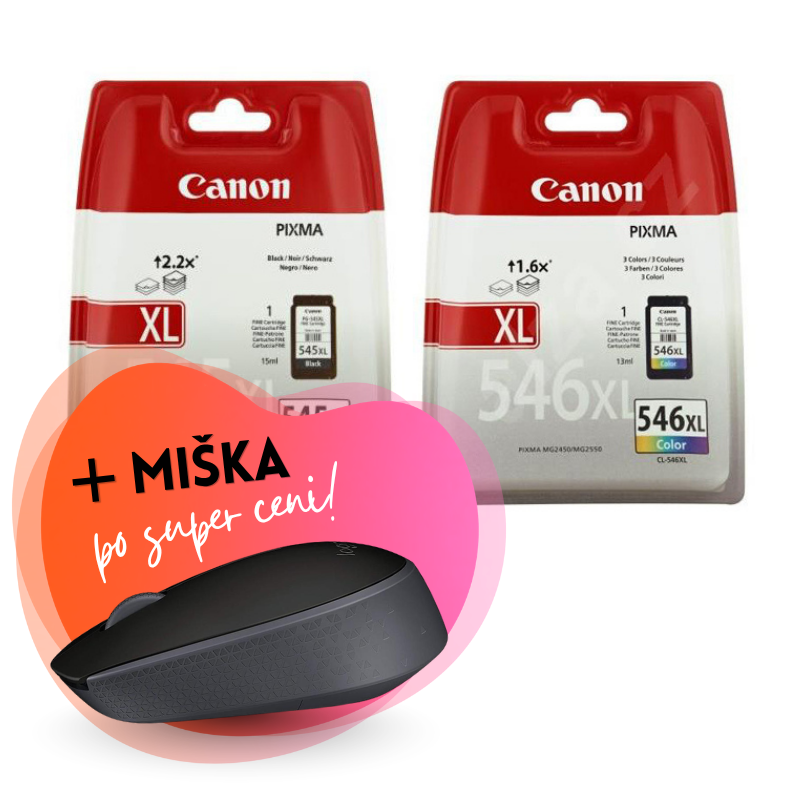 Komplet kartuš Canon PG-545XL + CL-546XL, original + brezžična miška po SUPER ceni
