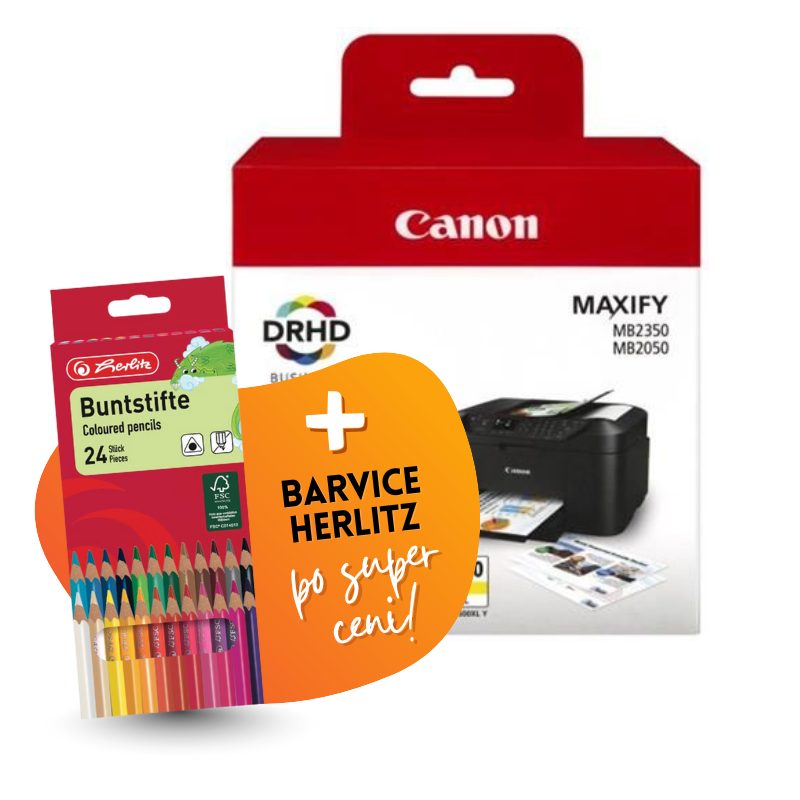 Komplet vsebuje: original kartuše Canon PGI-1500XL (BK/C/M/Y) in Barvice Herlitz, 24 kosov.