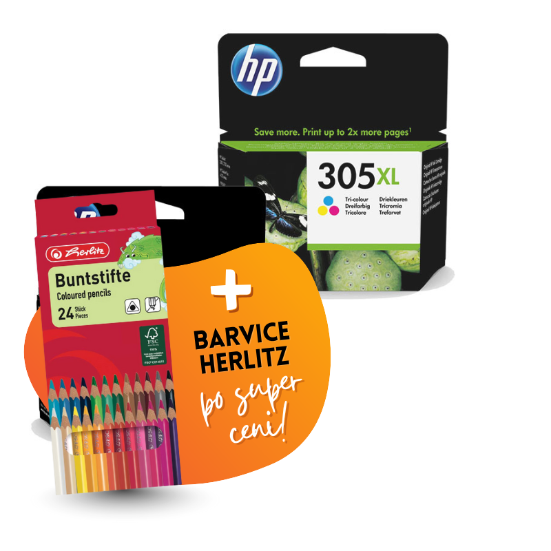 Komplet vsebuje: original kartuše HP nr.305 (BK + CMY) in Barvice Herlitz, 24 kosov.