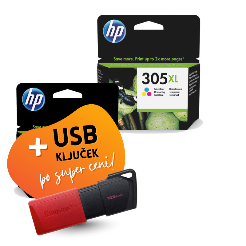 Komplet kartuš HP 3YM62AE nr.305XL (črna + barvna), original + USB ključek po SUPER ceni