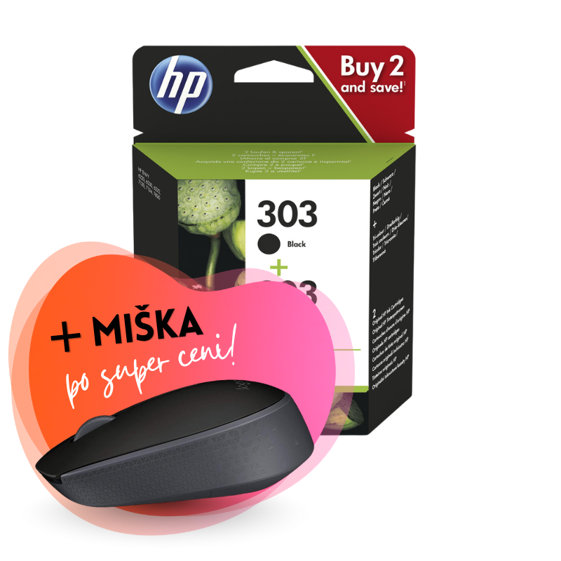 Komplet kartuš HP 3YM92AE (nr.303 BK + nr.303 CMY), original + brezžična miška po SUPER ceni