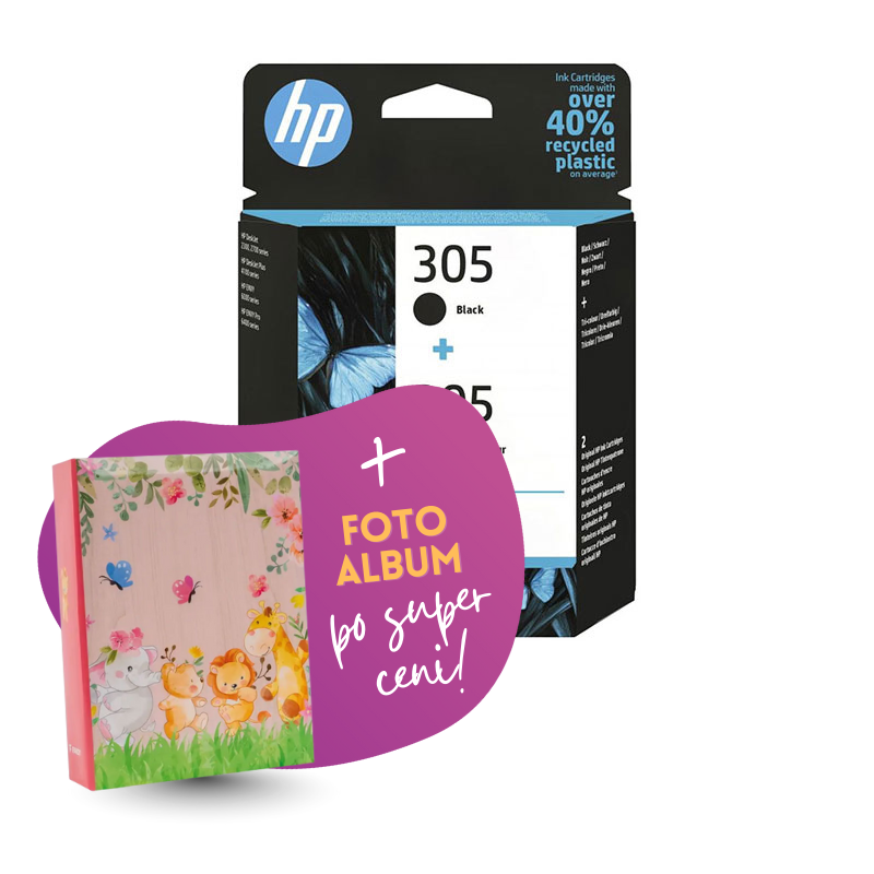 Komplet kartuš HP 6ZD17AE (nr.305 BK + nr.305 CMY), dvojno pakiranje, original + foto album po SUPER ceni