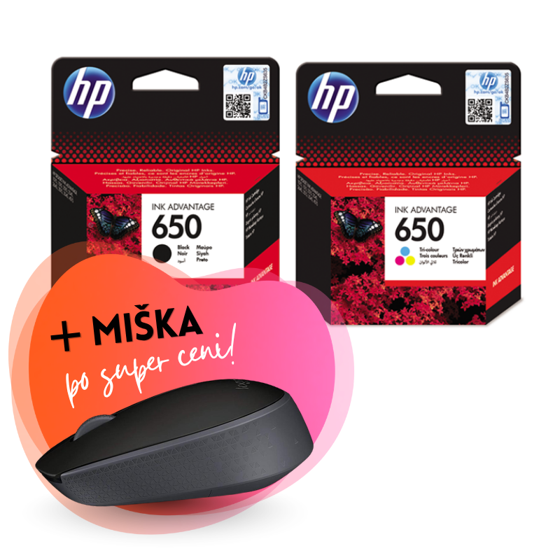 Komplet kartuš HP nr.650 (BK + CMY), original + brezžična miška po SUPER ceni