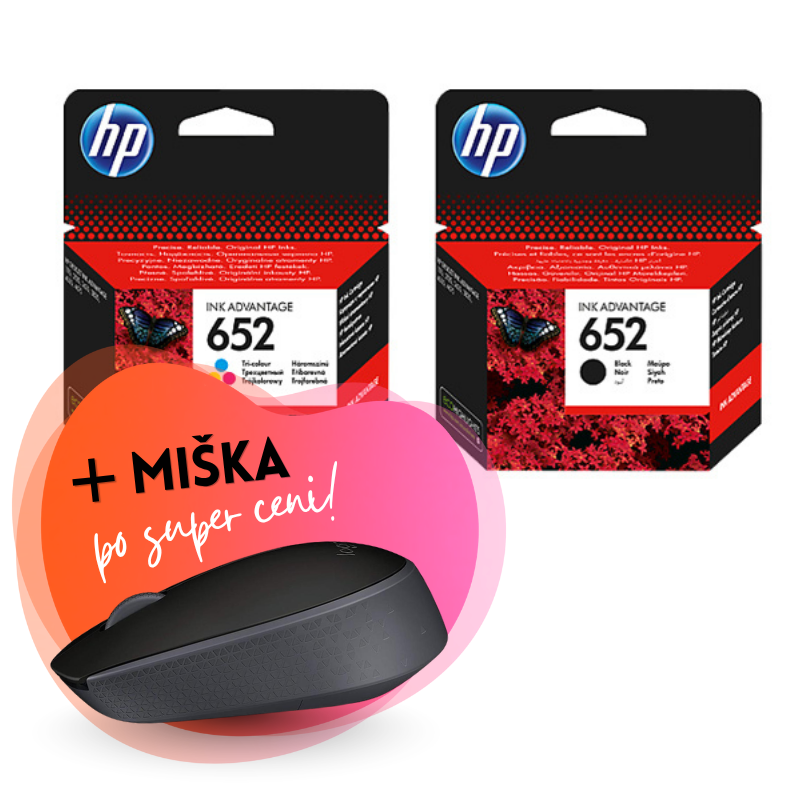 Komplet kartuš HP nr.652 (BK + CMY), original + brezžična miška po SUPER ceni