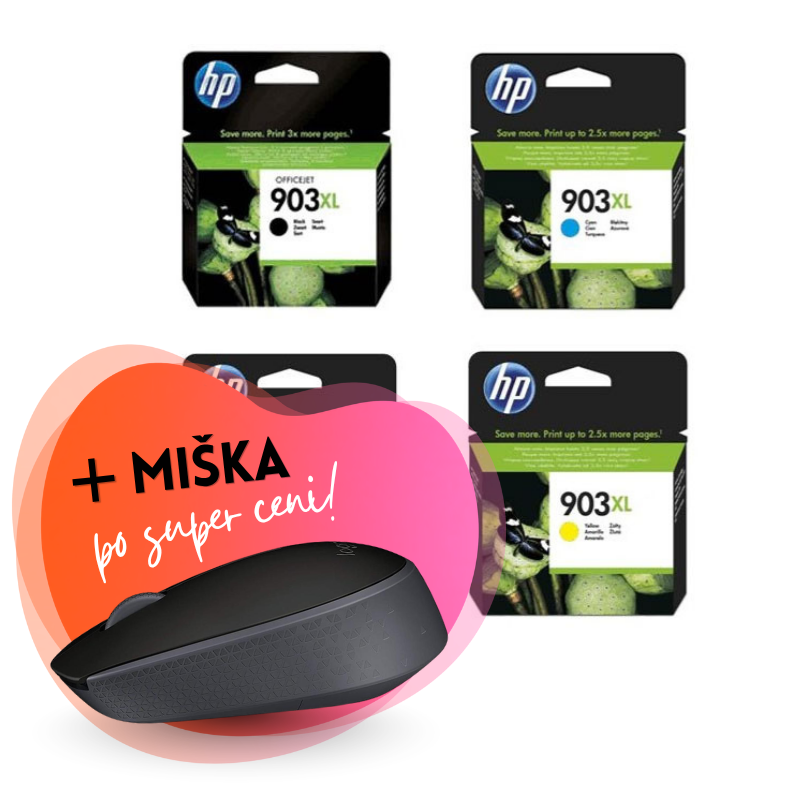 Komplet kartuš HP nr.903XL (BK/C/M/Y), original + brezžična miška po SUPER ceni
