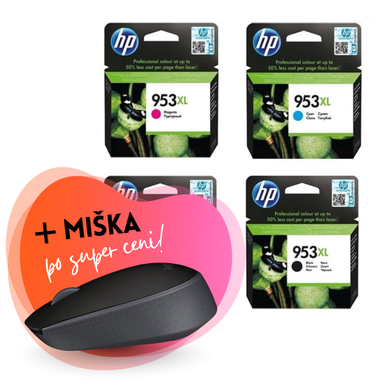 Komplet kartuš HP nr.953XL (BK/C/M/Y), original + brezžična miška po SUPER ceni