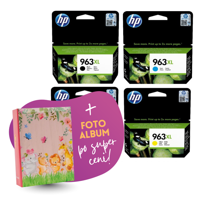 Komplet vsebuje: original kartuše HP nr.963 (BK + CMY) in Foto album Safari 2, 100 slik.