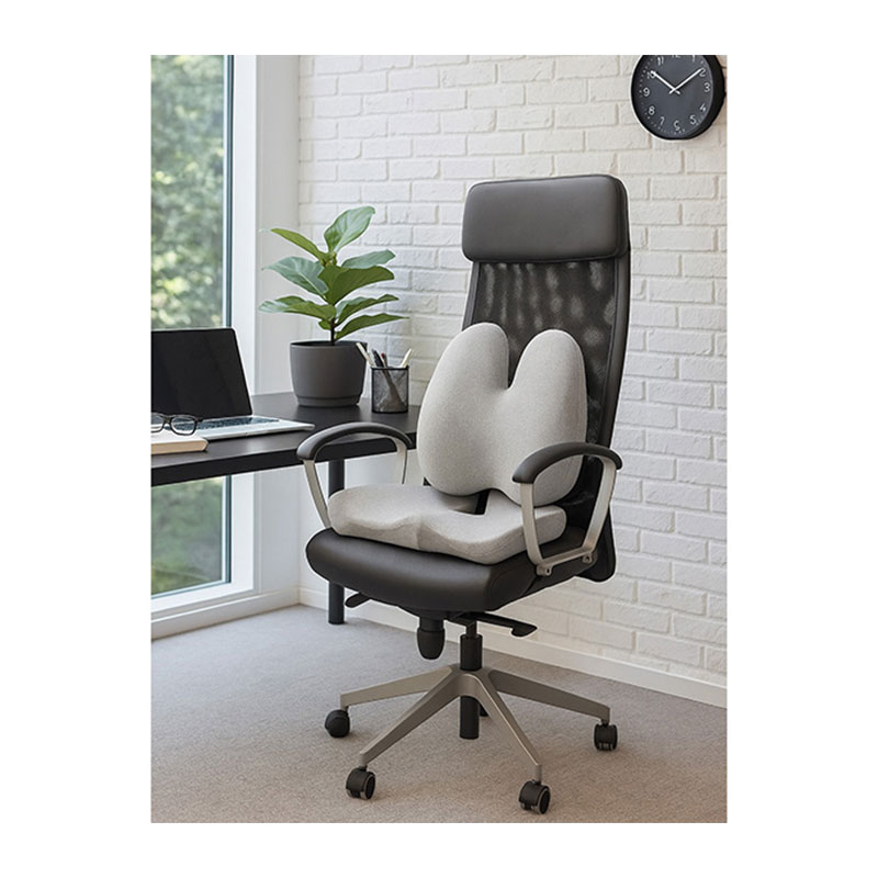 Ledvena opora učinkovito podpira spodnji del hrbta in pomaga ohranjati naravno krivino hrbtenice, s čimer zmanjšuje napetost in obremenitve pri sedenju. Zahvaljujoč nastavljivemu traku jo lahko enostavno pritrdite na različne vrste sedežev, kot so pisarniški stoli, fotelji ali avtomobilski sedeži. Sedežna blazina je oblikovana za enakomerno porazdelitev teže in zmanjšanje pritiska na boke ter sedeče kosti. Spodbuja boljšo prekrvavitev in izboljšuje ergonomijo sedenja, kar prispeva k večjemu udobju skozi ves dan. Komplet dopolnjuje odstranljiva in pralna prevleka, ki omogoča enostavno vzdrževanje higiene, ter protizdrsno dno, ki zagotavlja stabilno uporabo brez premikanja.