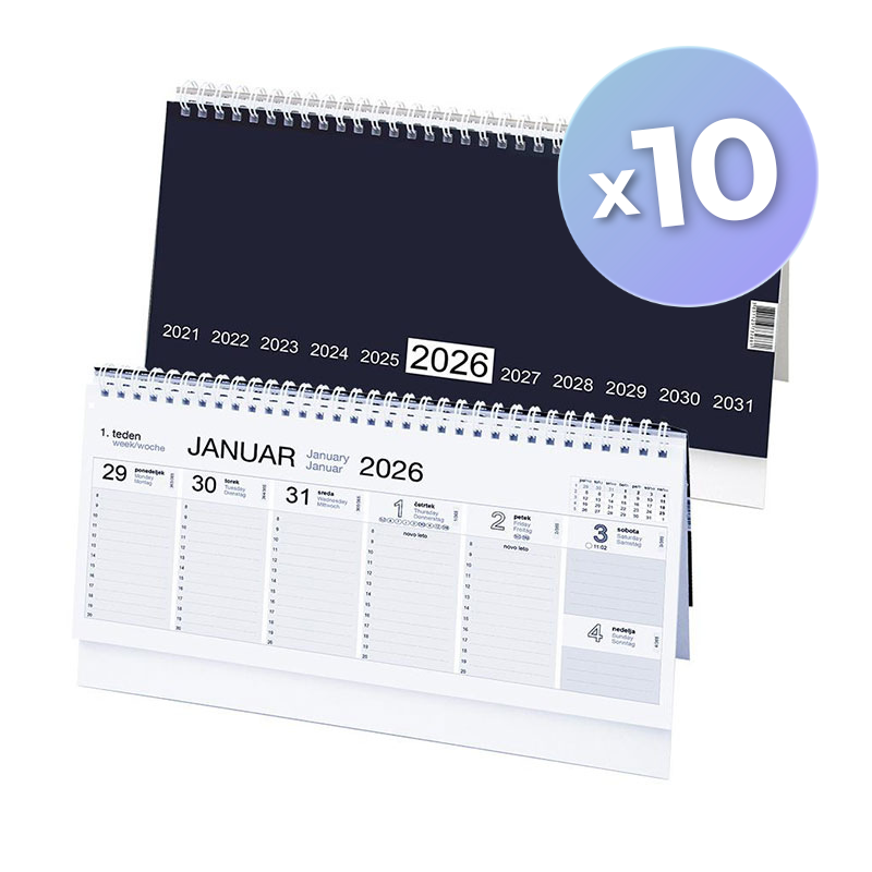 Komplet namiznih koledarjev - pokončni 2026, moder, 10 kosov