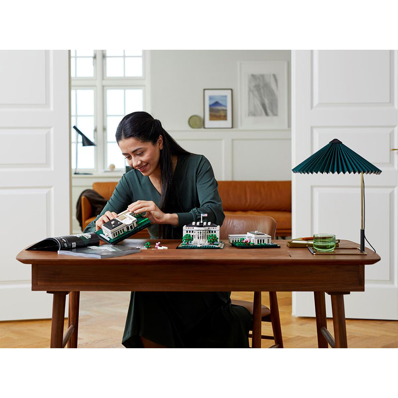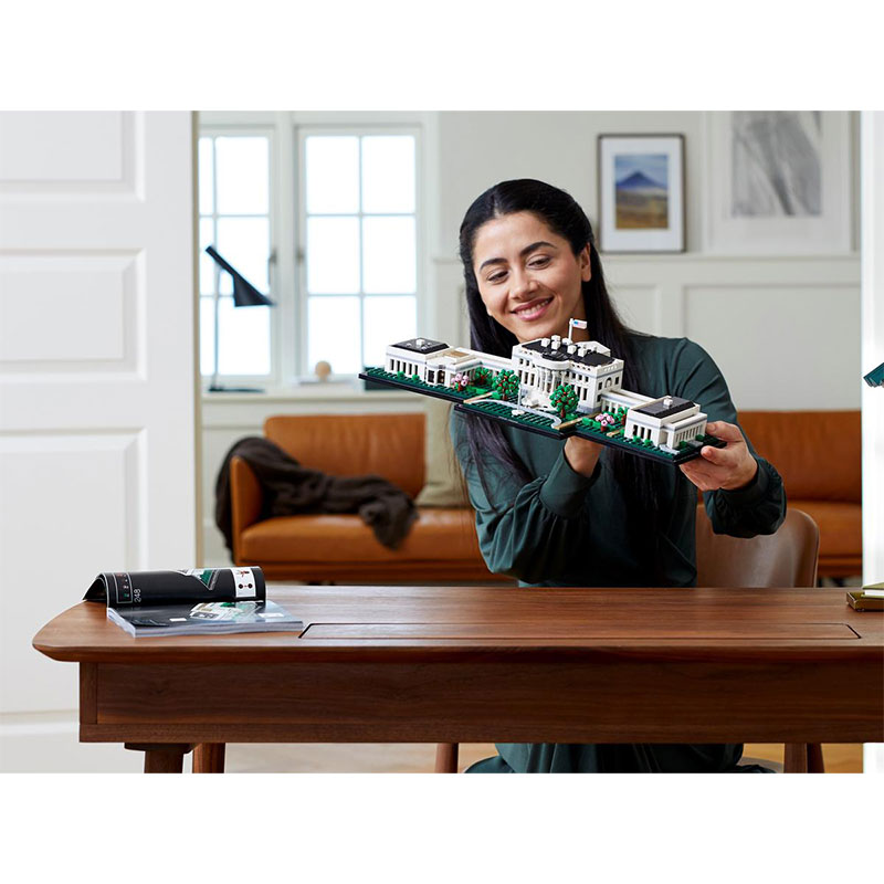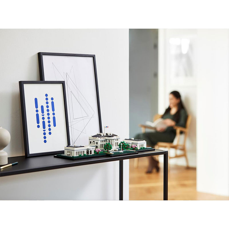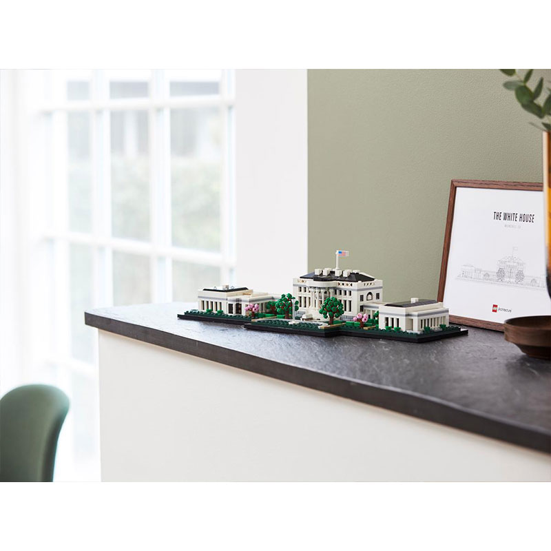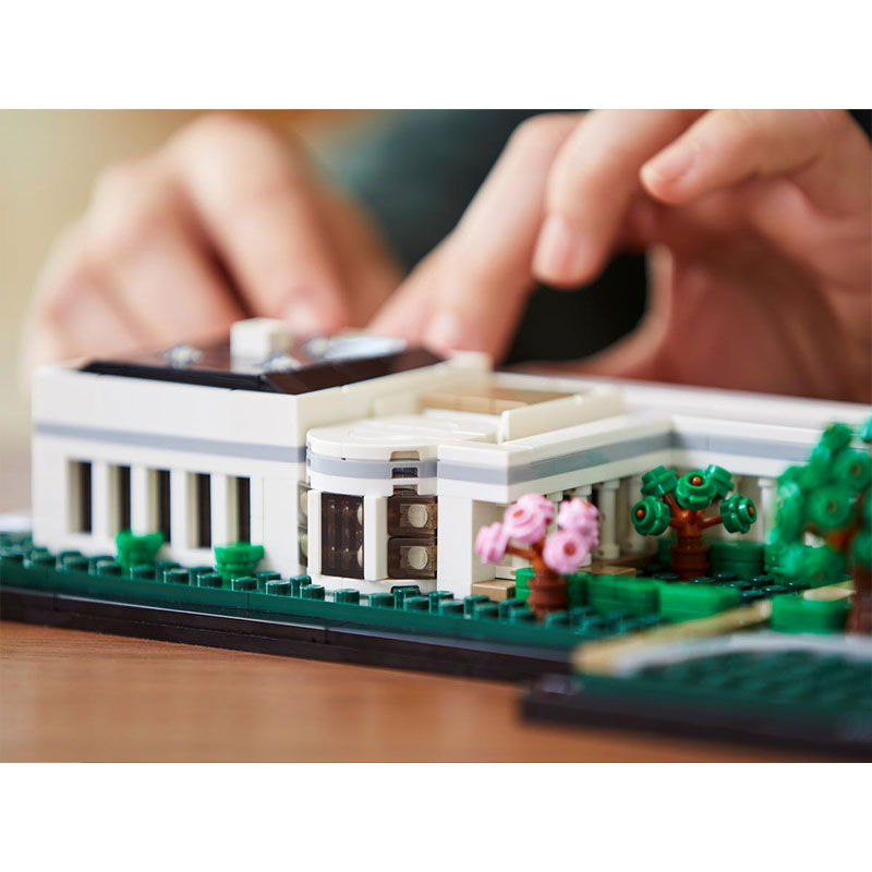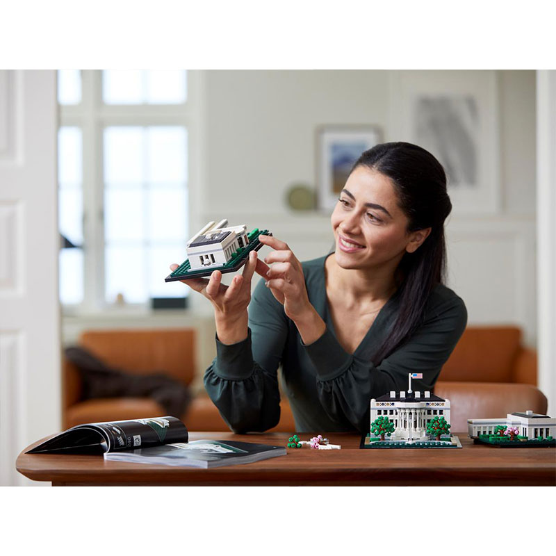 Uživajte v kreativnem kompletu za odrasle, ki omogoča gradnjo enega najbolj prepoznavnih simbolov ZDA. Ta natančno izdelan model predstavlja neoklasične stebre predsedniške rezidence, kolonade, ki povezujejo Vzhodno in Zahodno krilo ter okoliške vrtove s fontano. Model Bele hiše je razdeljen na tri dele, kar omogoča podrobnejši vpogled v arhitekturne značilnosti ter vključuje LEGO kocko z napisom The White House za zaključek elegantnega prikaza.