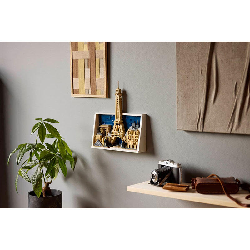 Zabaven gradbeni komplet, ki vključuje podrobnosti Eifflovega stolpa, katedrale Notre-Dame, Slavoloka zmage in Louvra, ki jih je mogoče sestaviti v estetsko stensko umetnino. Komplet je zaključen z dekorativnim ‘City of Love’ elementom in okvirjem iz LEGO kock, kar ustvarja impresivno arhitekturno dekoracijo.