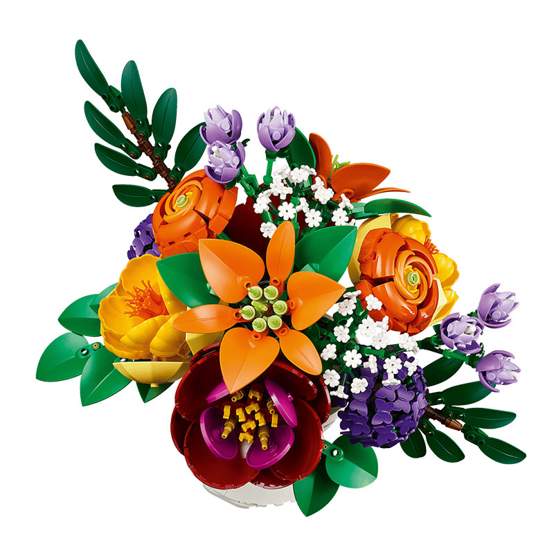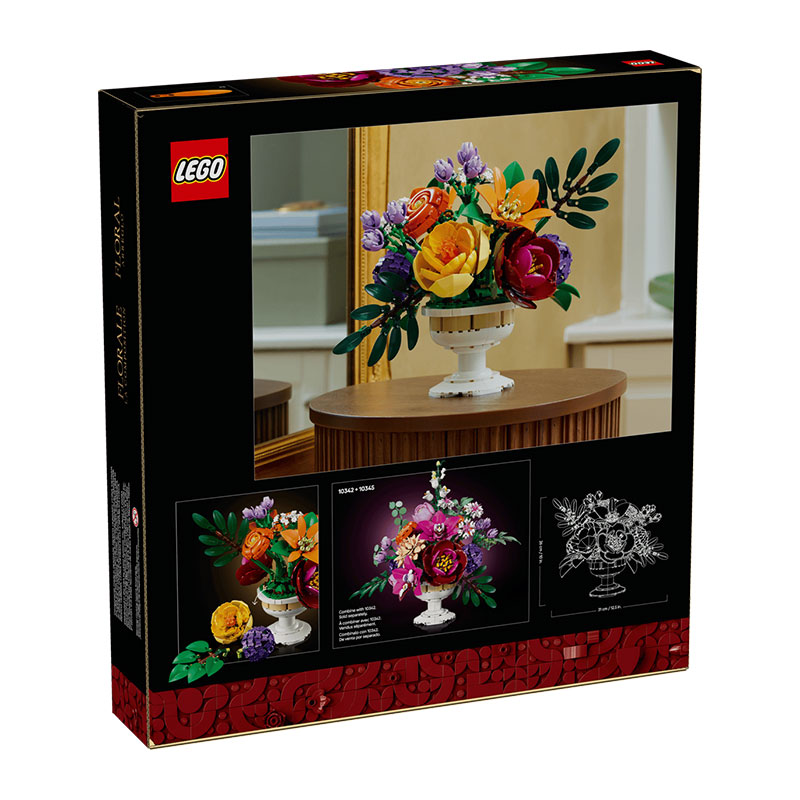 ter prefinjeno belo vazo na podstavku, ki doda pridih brezčasne elegance. Aranžma je prilagodljiv, saj omogoča menjavo cvetnih glav z drugimi kompleti iz kolekcije LEGO Botanicals (naprodaj ločeno).