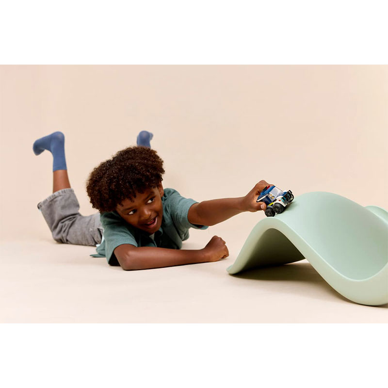 , nizkoprofilnimi gumijastimi pnevmatikami, zaščitnim odbijačem, zaporniškimi rešetkami in svetlobnimi opozorilnimi elementi. V kompletu je tudi policijska mini figura LEGO City Rides, ki se popolnoma prilega v voznikovo kabino.