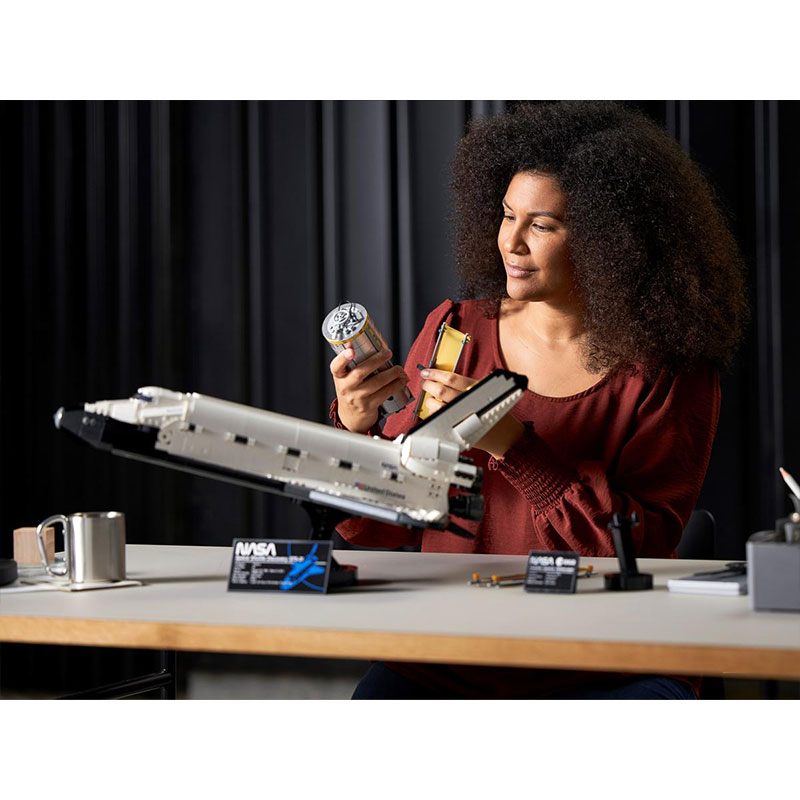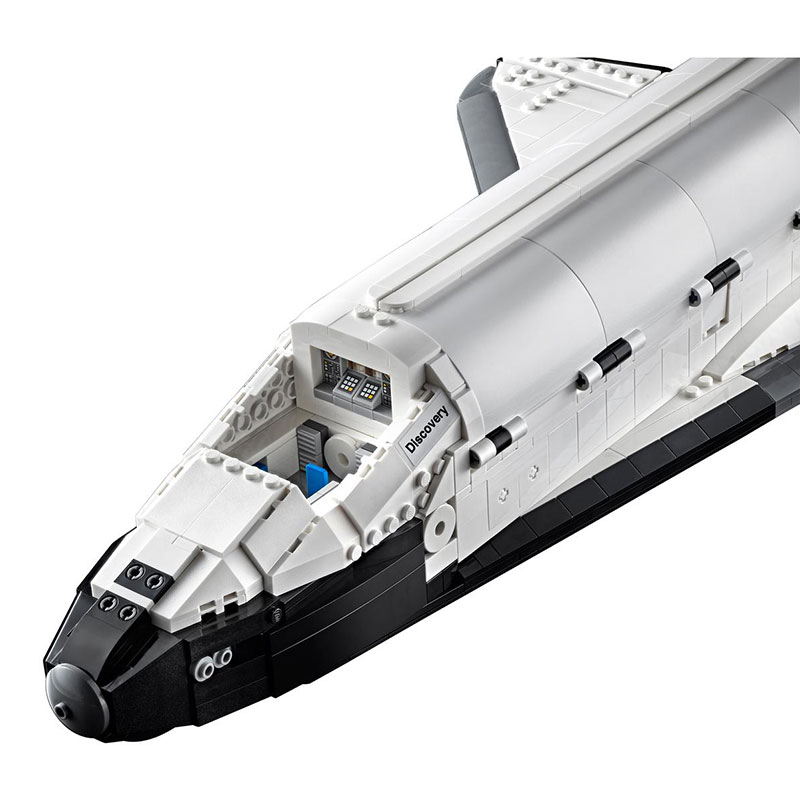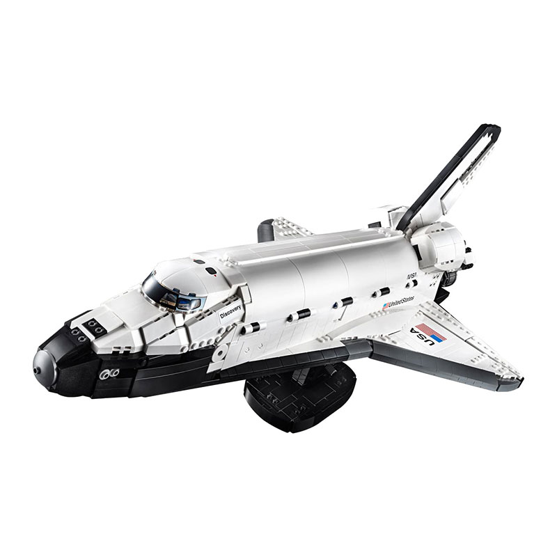 ter Hubble Space Telescope, izstreljenega v okviru NASA STS-31 misije leta 1990. Komplet ponuja številne pristne funkcije, ki poudarjajo izjemne dosežke Discoveryja. Odprite tovorni prostor, da sprostite teleskop Hubble na njegovo raziskovalno potovanje po vesolju, prilagodite elevone, aktivirajte pristajalno napravo pri vrnitvi na Zemljo in razporedite robotsko roko. Kokpit se odpira in razkriva letalno in srednjo palubo z sedeži za pet članov posadke. Teleskop vključuje premikajoče se sončne panele in zasteklitveni pokrov.