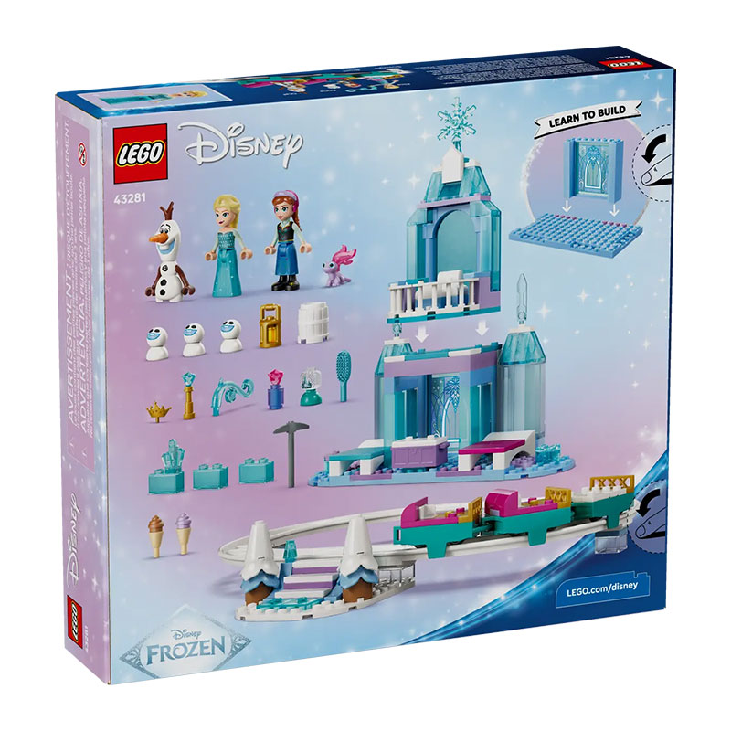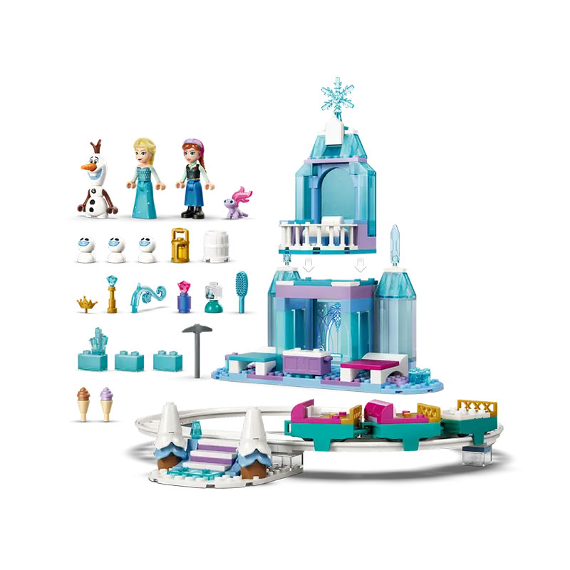 z dvorano, balkonom, dvema posteljama in kuhinjo. Posebna proga s stopnicami in tremi sanmi omogoča zimsko vožnjo okoli gradu. Vključeni so tudi elementi Starter Brick za lažji začetek gradnje in preprosta navodila, ki otrokom olajšajo sestavljanje. Set je združljiv z drugimi LEGO Disney seti.
