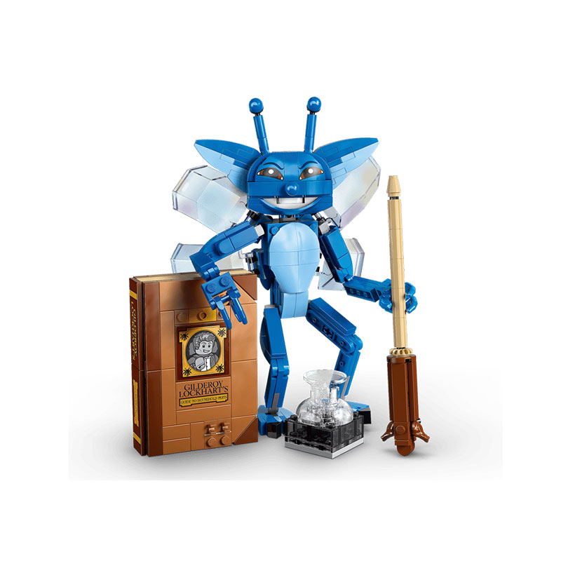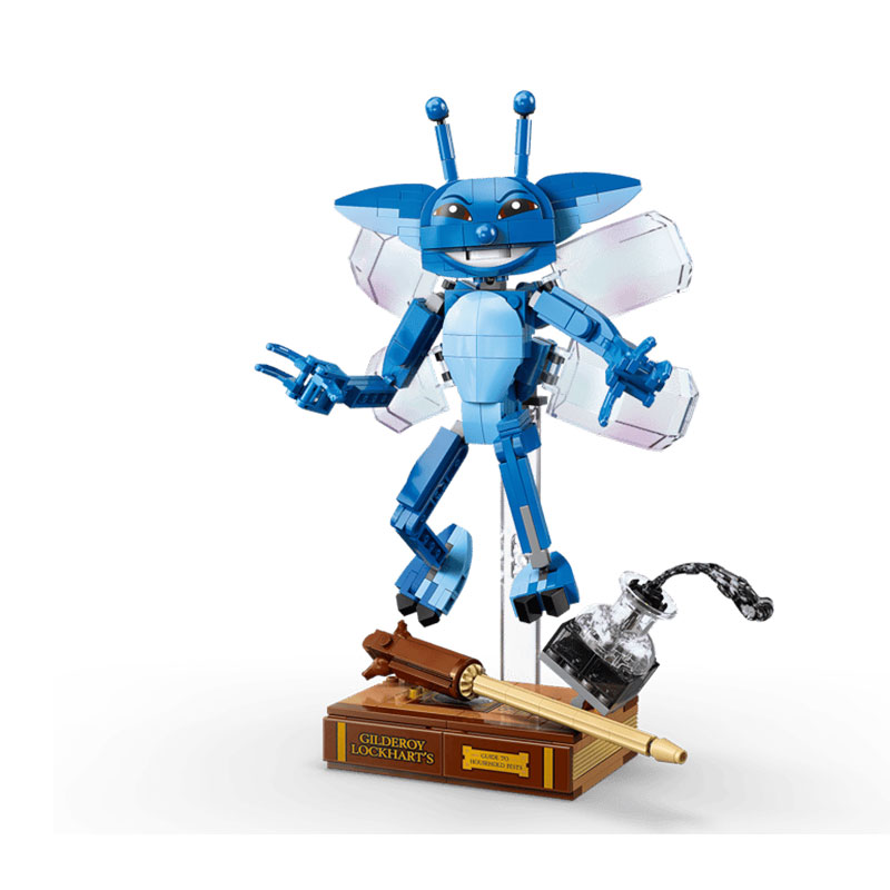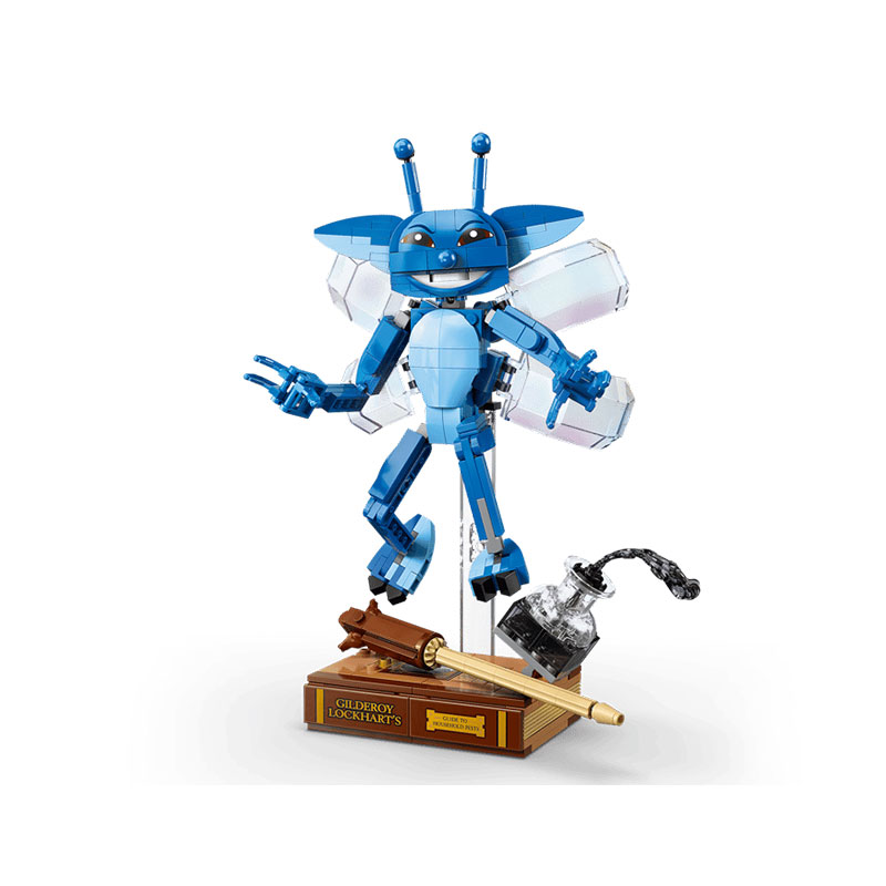 . Figura oživi kaotičen trenutek iz filma Harry Potter in Dvorana skrivnosti, ko profesor Gilderoy Lockhart spusti kletko s temi hudobnimi malimi vragolijami med uro Obrambe pred črno magijo. Otroci lahko Pixieja postavijo v leteči položaj na prosojnem stojalu ali pa ga postavijo pokonci.