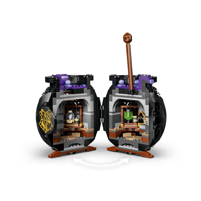 Set vključuje mešalno palico in skrivno učilnico za napoje z odstranljivimi mizami, steklenicami z napoji in LEGO sestavinami za različne napoje. Otroci lahko poustvarjajo pouk napojev s profesorjem Snapom in Hermiono Granger, medtem ko dodani detajli, kot je Hermionein Otter Patronus in eden od 14 zbirateljskih Hogwarts portretov, obogatijo igro.