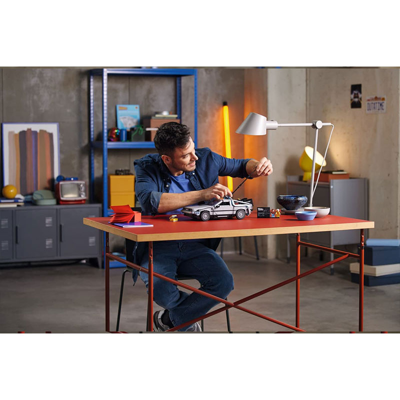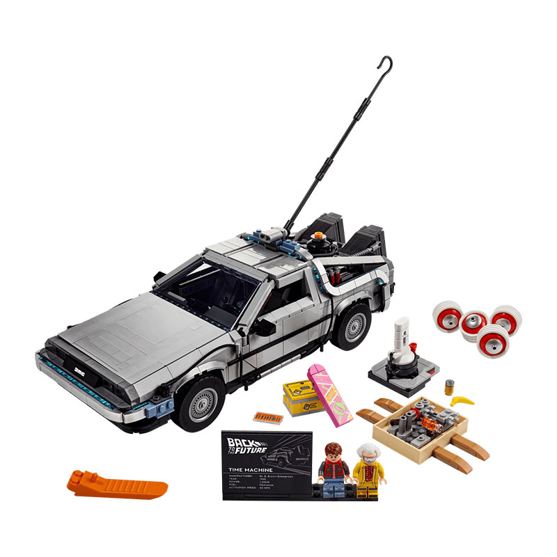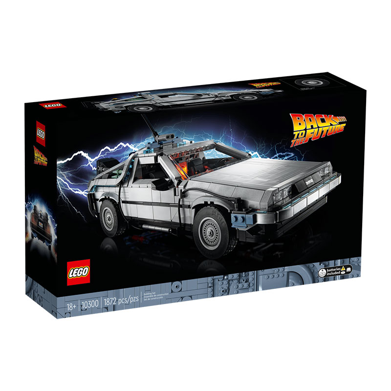 Prepustite se strasti do ene najbolj priljubljenih filmskih trilogij in zgradite eno od treh različic časovno-potovalnega avtomobila. Avtentične funkcije vključujejo odpiranje vrat v stilu „gull-wing“, zložljive pnevmatike za način letenja, osvetljen flux capacitor, natisnjene datume na armaturni plošči, odpirajočo se haubo, hoverboard ter zamenljive registrske tablice. Z mini figuricama Doca in Martyja ta model ustvarja popoln razstavni kos.