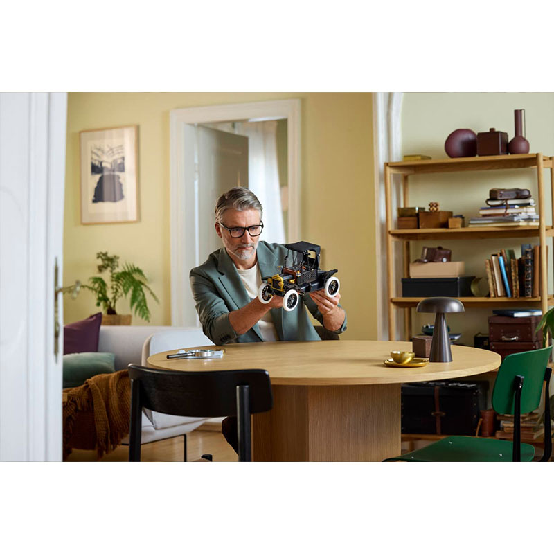 Razstavni model za odrasle, ki obuja eno najpomembnejših vozil v avtomobilski zgodovini. Gre za natančno izdelano repliko legendarnega avtomobila iz leta 1910, ki združuje klasičen dizajn in premišljene funkcionalne detajle. Model vključuje zložljivo platneno streho, spustljivo vetrobransko steklo, odpirajoča vrata in prtljažnik ter podrobno izdelano vozniško kabino s funkcionalnim krmiljenjem. Pod pokrovom se skriva motor z dodatnimi mehaničnimi elementi, ki poudarjajo avtentičnost vozila.