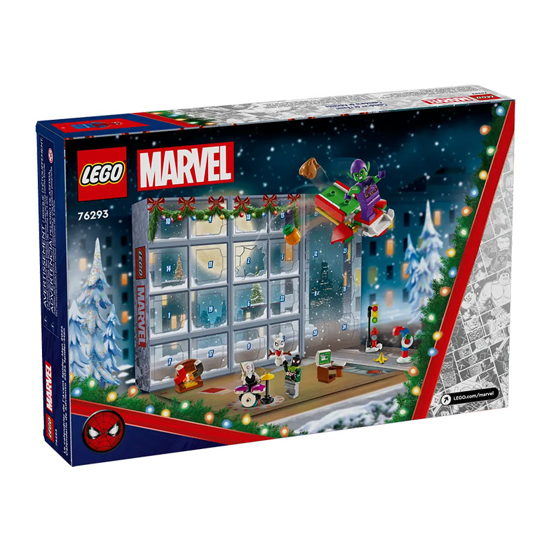. Za vsakim vratcem se skriva nov LEGO element – popolno presenečenje za vsak dan v decembru. Vključuje 5 mini figur: Spider-Man, Green Goblin, Miles Morales, Ghost-Spider in Venom ter majhne gradbene kompleti in dodatke, ki prikazujejo ikonične prizore iz New Yorka iz Spider-Man filmov.