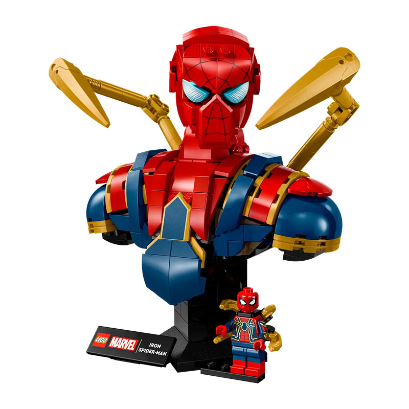 . Set vključuje 379 kock in omogoča ustvarjanje ikonične figure Spider-Mana v Iron Man oklepu z dvema gibljivima mehanskima rokama in gibljivo glavo. V kompletu sta dve zamenljivi podlagi z imensko ploščico: ena s prostorom za odklopljivo Iron Spider-Man minifiguro in ena brez nje.