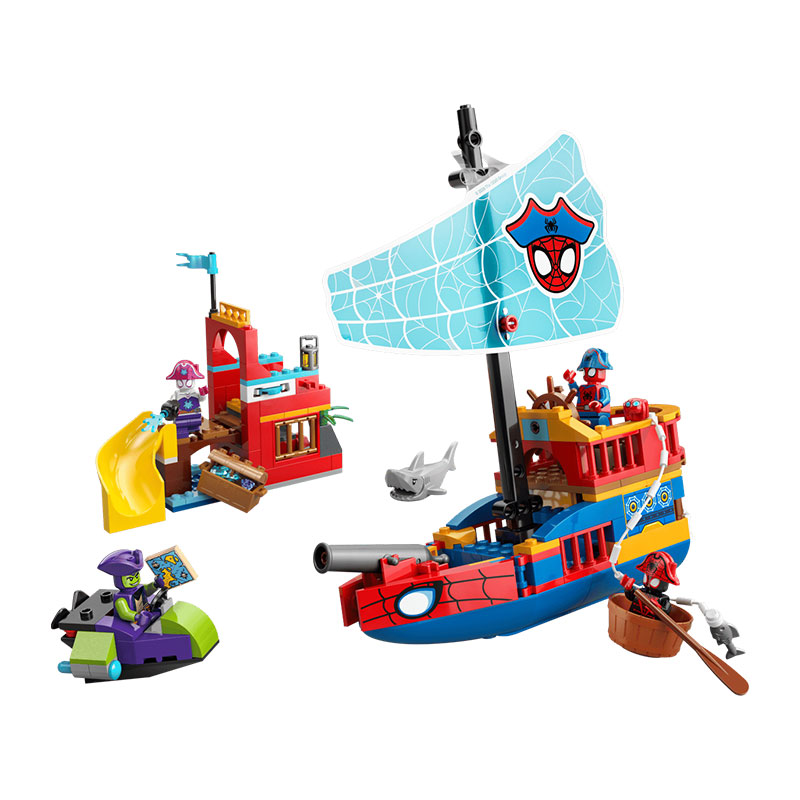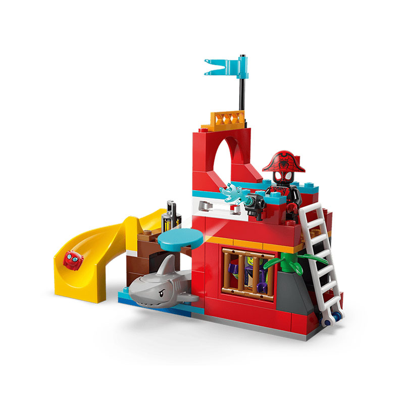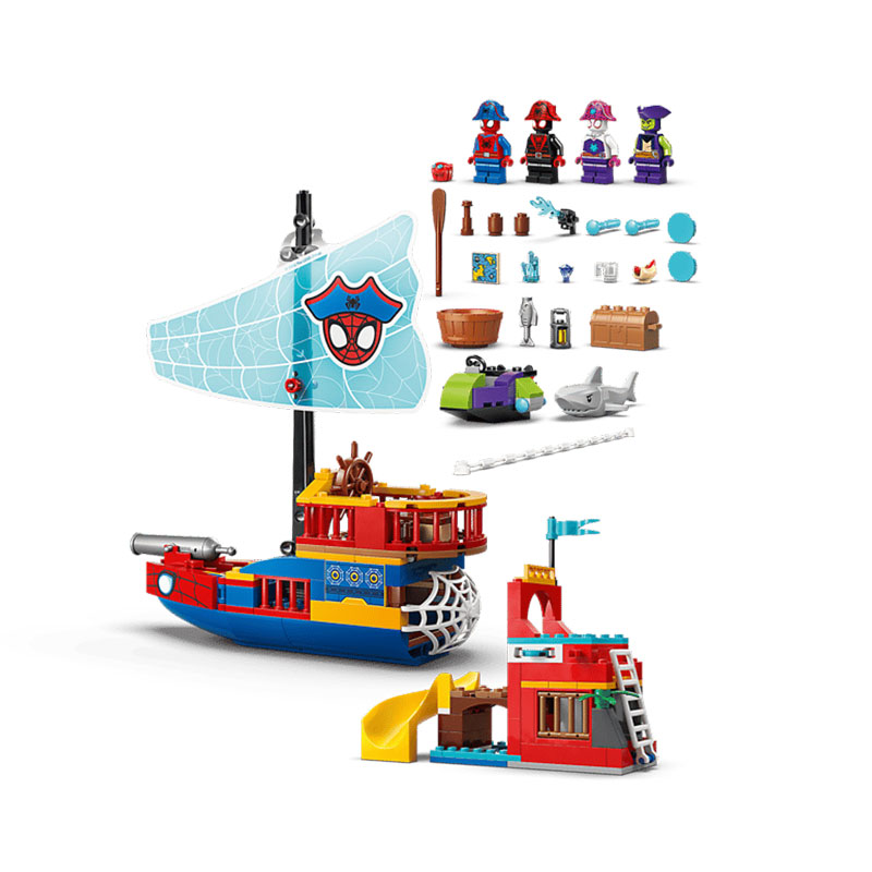 Zabaven gradbeni komplet, ki spodbuja domišljijsko igro in razvoj ustvarjalnih spretnosti. Komplet vključuje piratsko ladjo, Spider otok s toboganom, Green Goblinov čoln ter mini figure Spideyja, Ghost-Spiderja, Green Goblina in Miles “Spin” Moralesa.