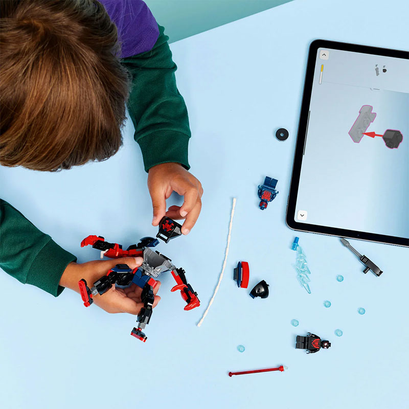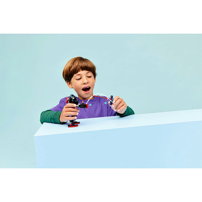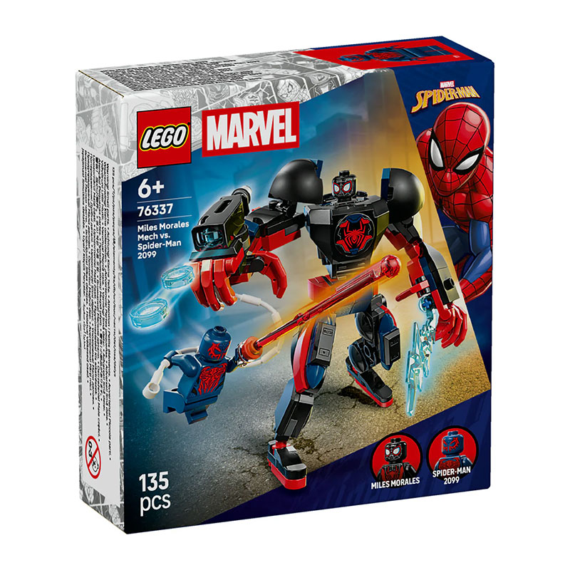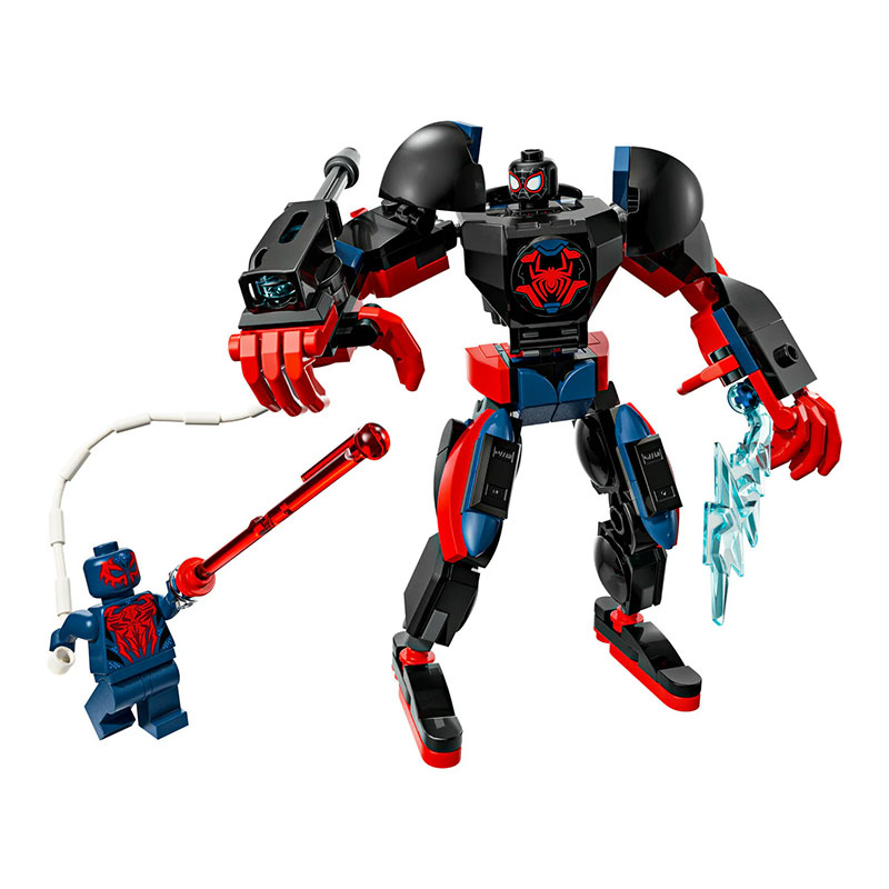 Zabaven gradbeni komplet, ki je namenjen vsem oboževalcem super junakov. Vključuje mini figure Milesa Moralesa in Spider-Mana 2099 ter velik, popolnoma gibljiv mech, ki omogoča dinamično in ustvarjalno igranje vlog.