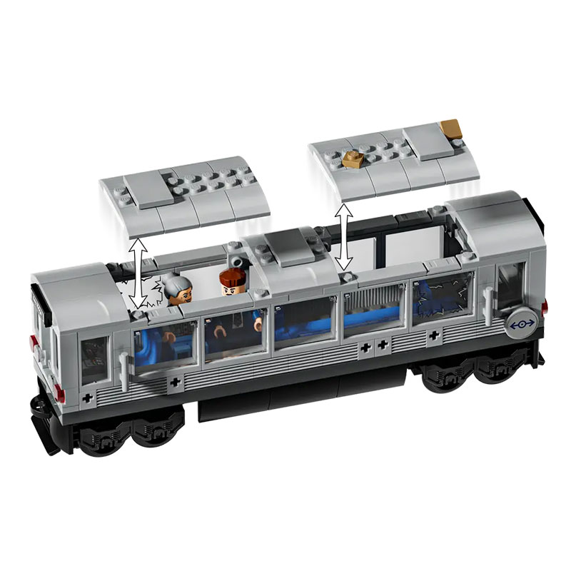 , od katerih sta dva opremljena z “laser beam” elementi, dva pa s kljukami za pritrditev na vlak. Streha vlaka je snemljiva, kar omogoča dostop do notranjosti, kjer lahko sedi minifigura potnika.