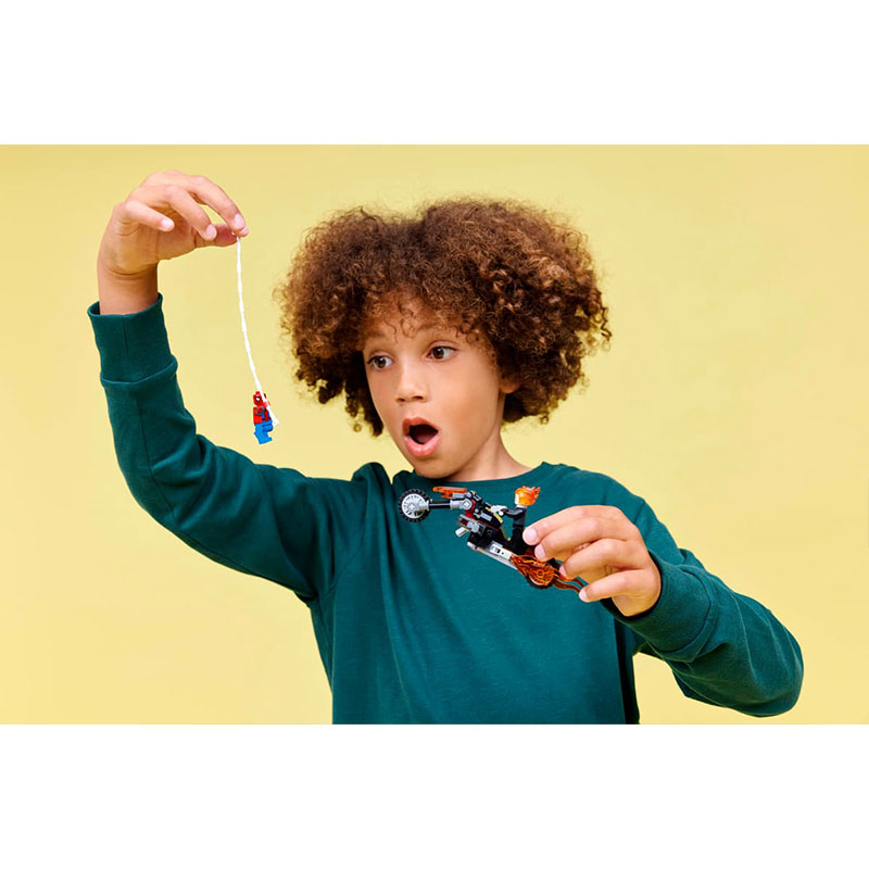 Zabaven gradbeni komplet, ki je namenjen vsem oboževalcem super junakov. Vključuje mini figure Spider-Mana in Ghost Riderja ter bojevno motorno kolo.