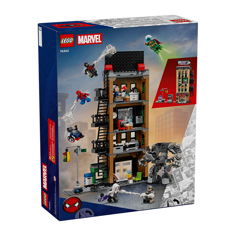 Zabaven gradbeni komplet, ki otrokom omogoča, da se potopijo v večplastno Super Hero akcijo iz sveta Spider-Man. Zasnovan za gradnjo, igranje in razstavljanje, vključuje pa številne mini figure, interaktivne prizore in dinamične možnosti igre. Vključuje tudi gibljiv mech Rhina z odpirajočo se kabino. Notranjost Daily Bugle stavbe je podrobno izdelana in vključuje pisarne, sprejemnico, novinarsko tehnologijo, sef ter delujočo ročico za menjavo oglasnega panoja, zunanjost pa nudi požarni izhod, premični novinarski kios in ulični vogal s prometnimi lučmi, kar bogati igranje in ustvarjalnost.