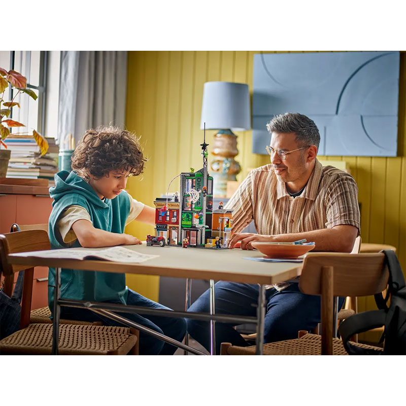 Set vključuje 808 kock in prikazuje ulični prizor, sestavljen iz