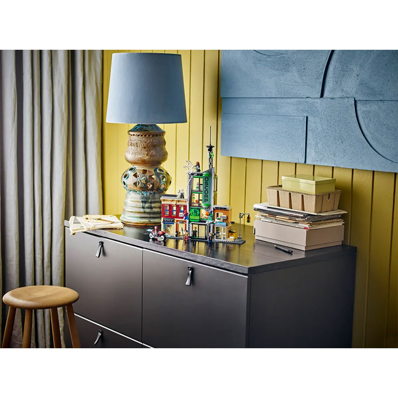 : stanovanje Milesa Moralesa nad trgovino z nakitom, stavbo Oscorp in stanovanje Venoma nad trgovino s časopisi. Vsaka soba je opremljena z opremo in dodatki za še bolj realistično igro. V kompletu je