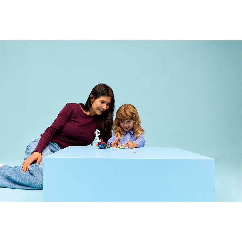 Zabaven komplet vključuje mini figuri Spideyja in Rhina ter spider motor.