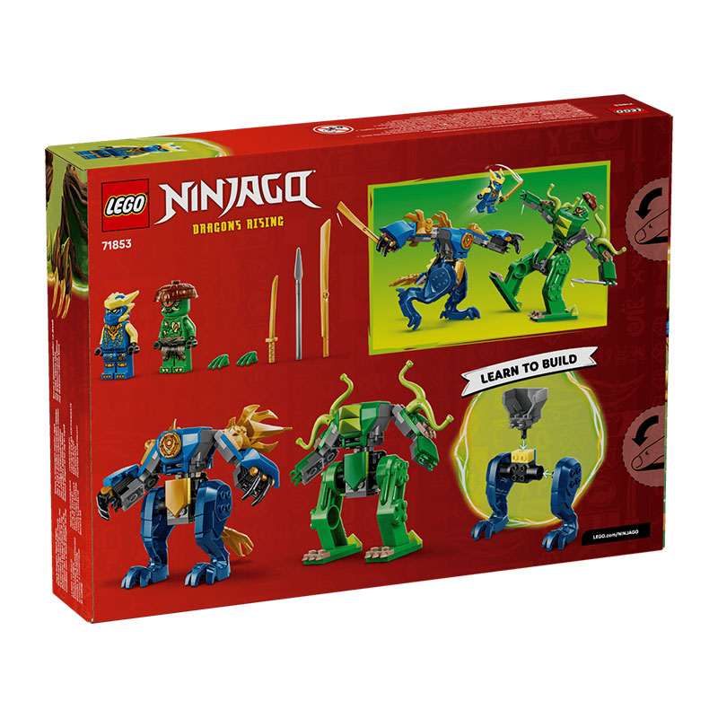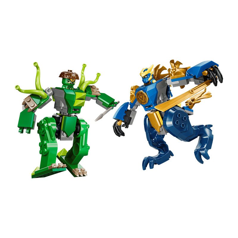 Zabavna in akcijska gradbena igrača za otroke od 4. leta dalje. Set vključuje 2 gibljiva meha in 2 mini figuri, ki omogočata razburljive dvoboje. Jayev zmajski meh ima premične dele in odpirajoč kokpit, medtem ko sovražni meh ponuja gibljive lovke in dodatne funkcije za dinamično igro.