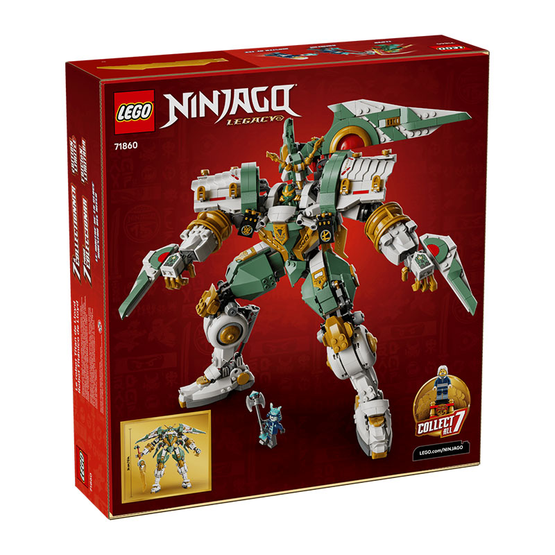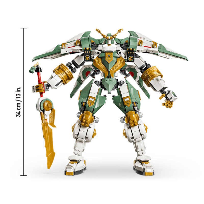 impresiven zbirateljski in igralni set za najstnike od 14. leta dalje ter vse oboževalce NINJAGO sveta. Ob posebni 15. obletnici prinaša nadgrajeno različico priljubljenega Lloydovega meha. Model navdušuje z gibljivimi deli, kot so krila, roke, noge in trup, ter odpirajočim kokpitom za minifiguro. Opremljen je z velikim mečem in prvič tudi z velikim ščitom, ki ga lahko preoblikujete v krila na hrbtu. Set vključuje 3 mini figure.