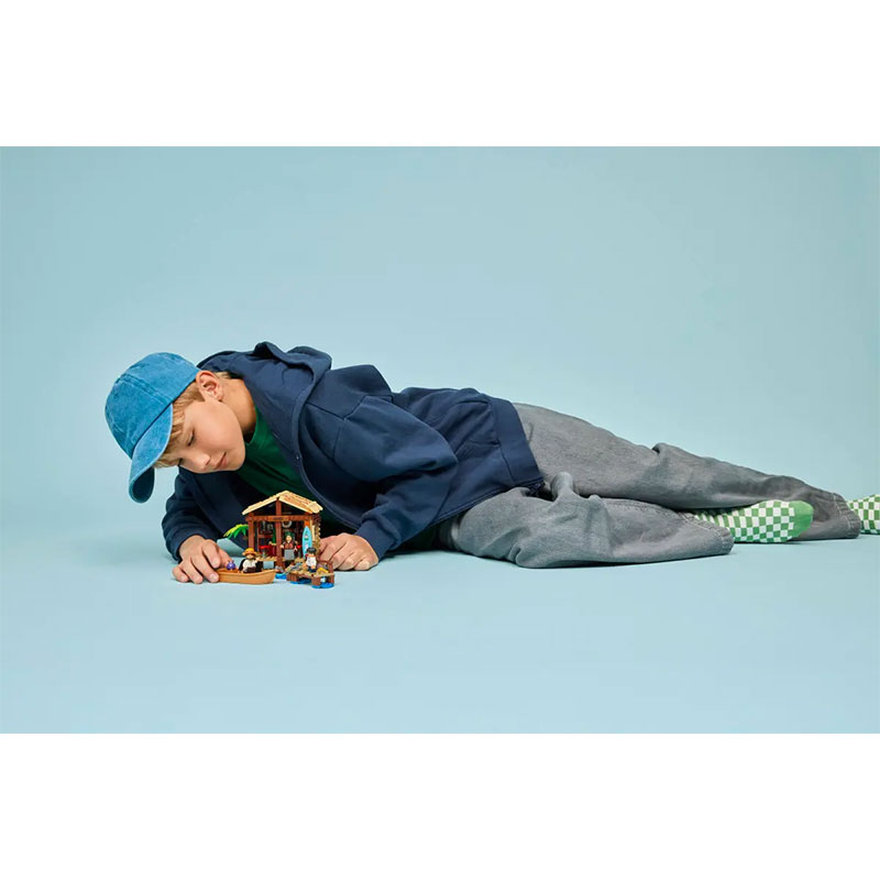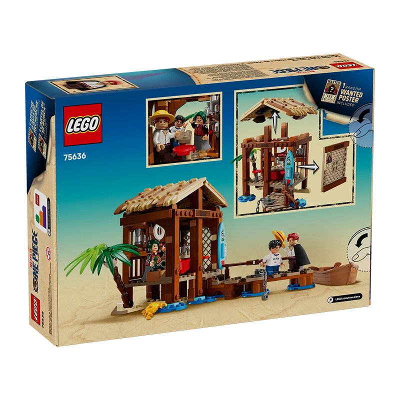 ob plaži in tako dostopajo do notranjosti polne zabave. Notranjost vsebuje dodatke za vodenje trgovine in zabavo obiskovalcev, vključno z "Wanted" plakatom. Zunaj je piratska ladjica pritrjena na pomol s pomočjo verige. Set vključuje tri nepozabne mini figure iz Netflixove serije: Luffyja, Shanksa in Makino.