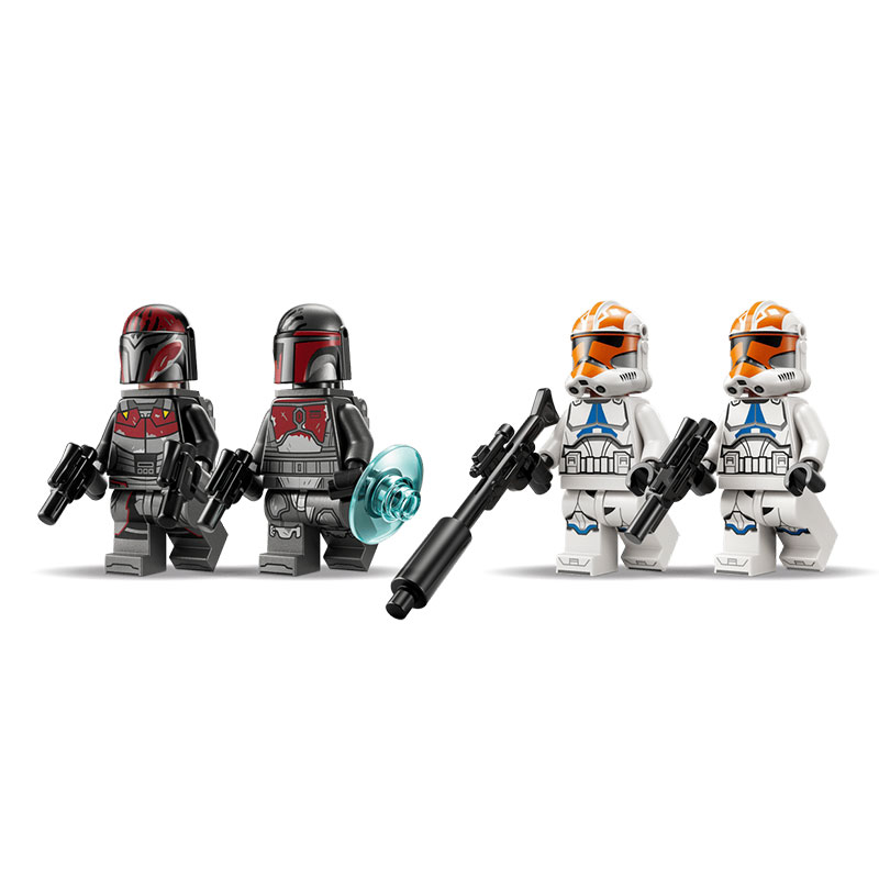 Zabaven gradbeni komplet, ki omogoča poustvarjanje epskih prizorov iz bitke za Mandalore iz serije Star Wars. Vključuje štiri mini figure: dva Mandalorijanska Super Commandosa in dva 332. Clone Trooperja Ahsoke ter Mandalorijan speeder, barikado Clone Trooperjev in številne dodatke za akcijsko igro.
