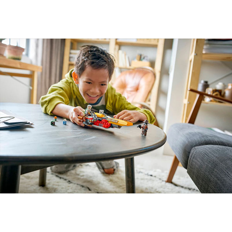 Zabaven gradbeni komplet, ki omogoča poustvarjanje razburljivih prizorov iz serije The Mandalorian. Vključuje podrobno zasnovanega speederja, ki ga upravlja Cobb Vanth. Model vključuje voznikov sedež za mini figuro, nosilec za pištolo ter skriti predal za shranjevanje ikoničnih dodatkov, med katerimi sta tudi čelada Bobe Fetta in tetrapak z bantha mlekom. V kompletu je tudi mini figura Cad Banea, opremljena z dvema blasterjema, medtem ko ima Cobb Vanth na voljo jetpack za akcijo v zraku.
